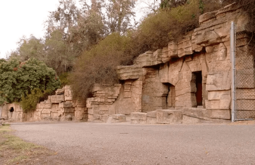 This is the well-known historic Los Angeles Zoo, which opened in 1912 and closed its doors in 1966. The zoo site has been abandoned, although animal enclosure remnants can still be found. This area is used by modern inhabitants for picnics and walks, and there are even benches and tables for park visitors on the property.