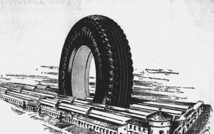 In 1920, the Goodyear factory was built in the south-central part of LA. However, Goodrich surpassed the production capacity, cost and scale of its predecessor, earning the title of the biggest factory.