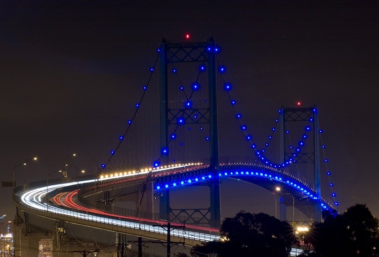 For the bridge’s 25th anniversary in 1988, a public fundraising campaign was launched to install decorative lighting on the main cables. In 2005, after 17 years of development, 160 blue LED lamps powered by solar panels were installed on the bridge. The project cost approximately $1 million. In 2023, Caltrans announced a major plan to replace the bridge deck, with an estimated cost of $706 million.