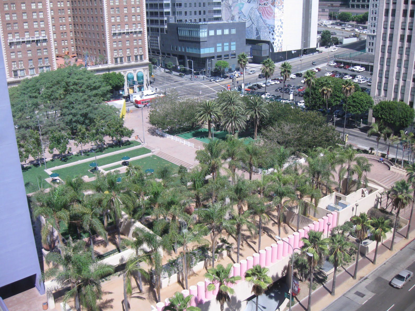 Этот парк в самом сердце Лос-Анджелеса предлагает развлечения и мероприятия на любой вкус. В этом районе проводится множество массовых мероприятий: летом четыре раза в неделю проводятся бесплатные концерты и кино, а с ноября по январь можно покататься на коньках. Также в парке каждый желающий может потанцевать сальсу. Здесь действуют шахматные клубы, которые организуют турниры для новичков и опытных игроков. Ежегодно на месте проводится художественных выставки. А если вы хотите бесплатно заняться йогой или зумбой, то это место тоже для вас.