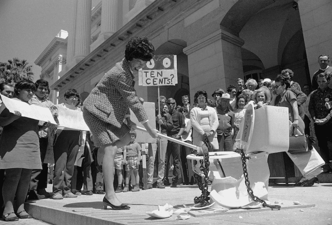 В библиотеке Бенкрофта сохранилась фотография, на которой Марч Фонг Ю, член Калифорнийской ассамблеи, во время протеста против платных туалетов в апреле 1969 года разбивает туалет кувалдой.